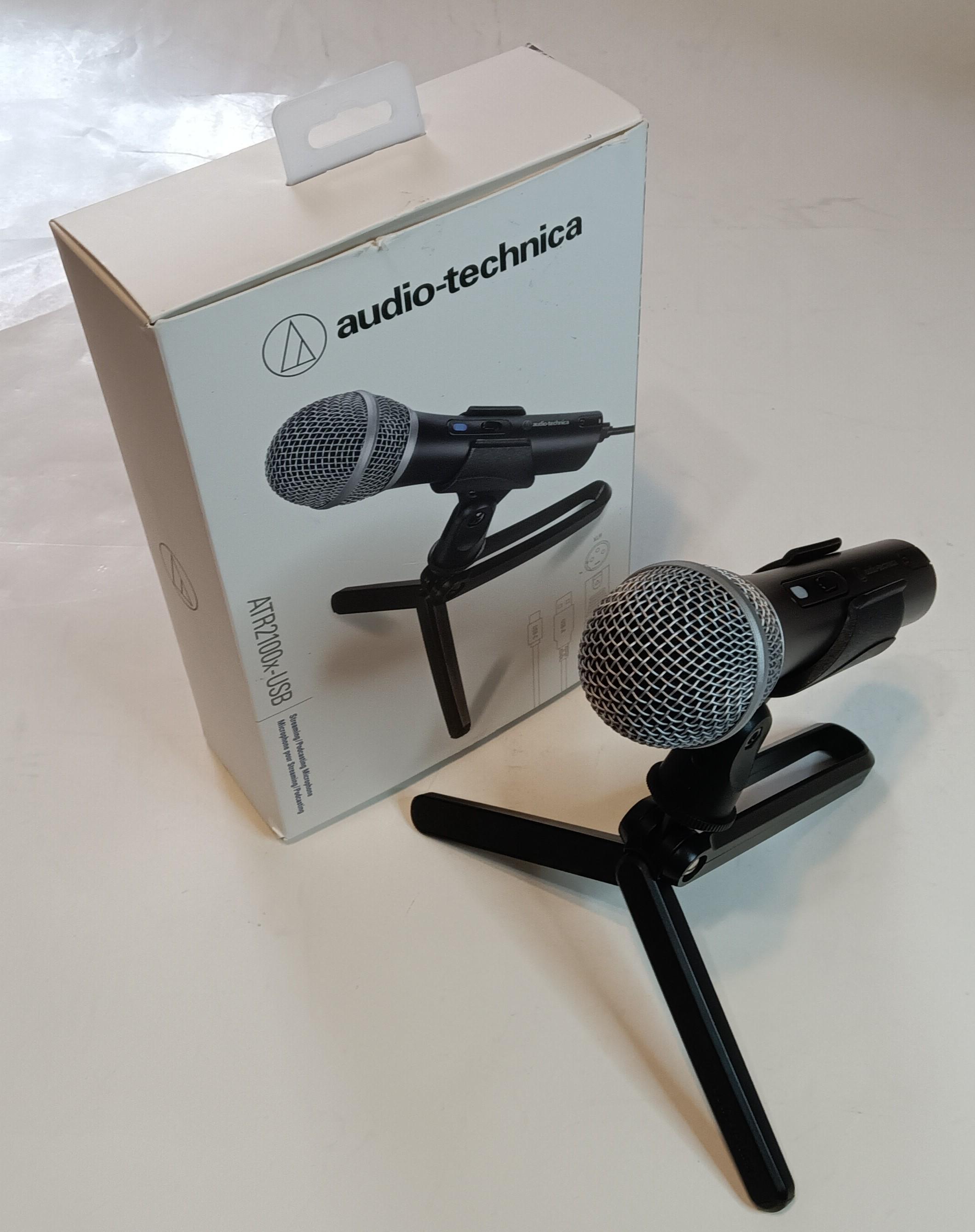 I have used this microphone model for several years in different venues and have been very pleased with its performance. It is an Audio-Technica ATR2100x model, with USB and XLR connectivity. This multi-use dynamic microphone is great for public performances, singing, or speech. It is also a great streaming or podcast microphone, as it connects to both Windows and Mac computers with USB-C for easy digital recording. An added feature is its headphone output jack, giving you an in-ear monitor. Of course, it has an XLR analog output for connecting to amplifiers, mixers, or a sound system’s microphone input. Gently used, microphone with table-top stand, (no cables included) available for pickup in downtown Montgomery, Alabama, or can ship.