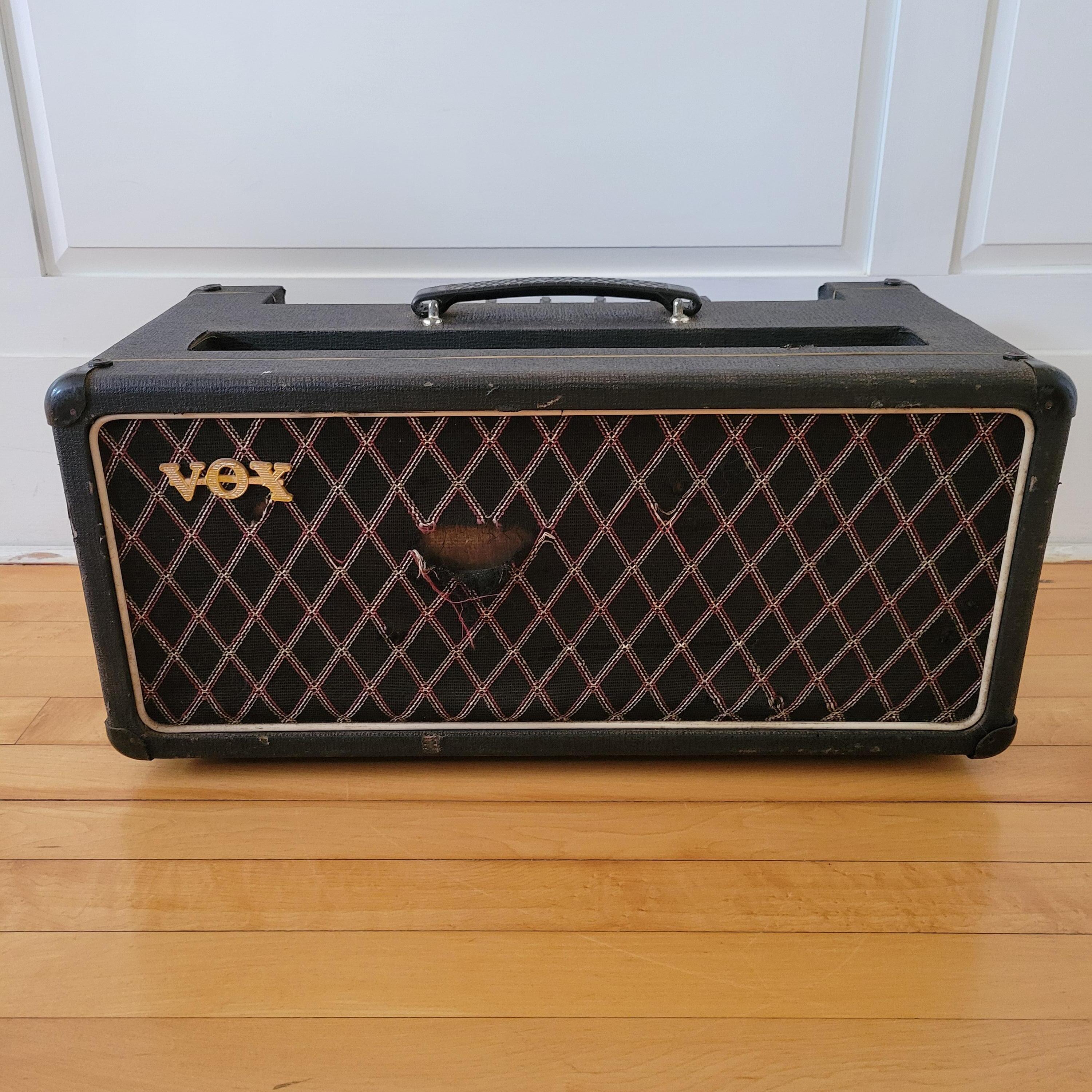 The AC50 was developed specifically for the Beatles so fans could hear them better live. The two EL34s produce around 50 watts. Both channels feature the "Top Boost" circuit. This is the Mark III version introduced in 1965 when Vox changed from a tube rectifier to a solid state rectifier. The power tubes are EL34 (2), 12AU7 (1), and 12AX7 (3).