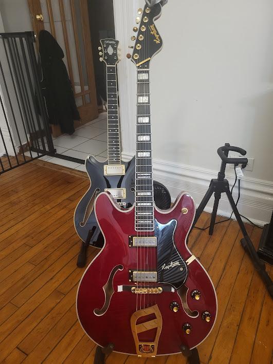 Used Hagstrom 67 Viking II semi hollowbody guitar, with new Hagstrom hard shell case
