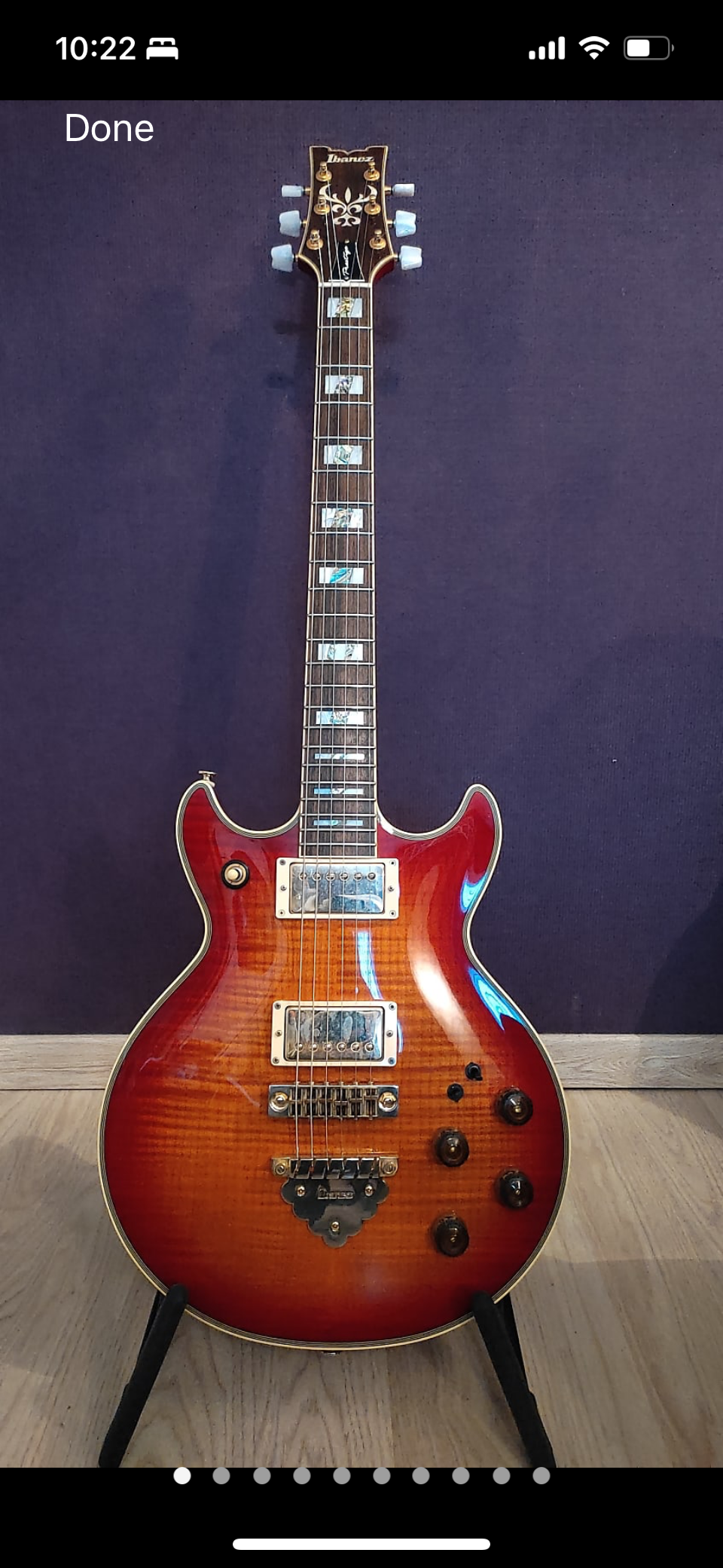 This guitar is a stunner! This model is an almost perfect reproduction of the famous 80's AR300 series. Some of the era-correct details include the M perloid tuner grips, the rosewood headstock cap, the rectangular Gibraltar bridge and the deeper horn position of the pickup switch.. Ibanez built these Prestige Reissues to look and feel like they came direct from the factory in 1983. The fit and finish on it is perfection. It sounds amazing and plays like a dream.