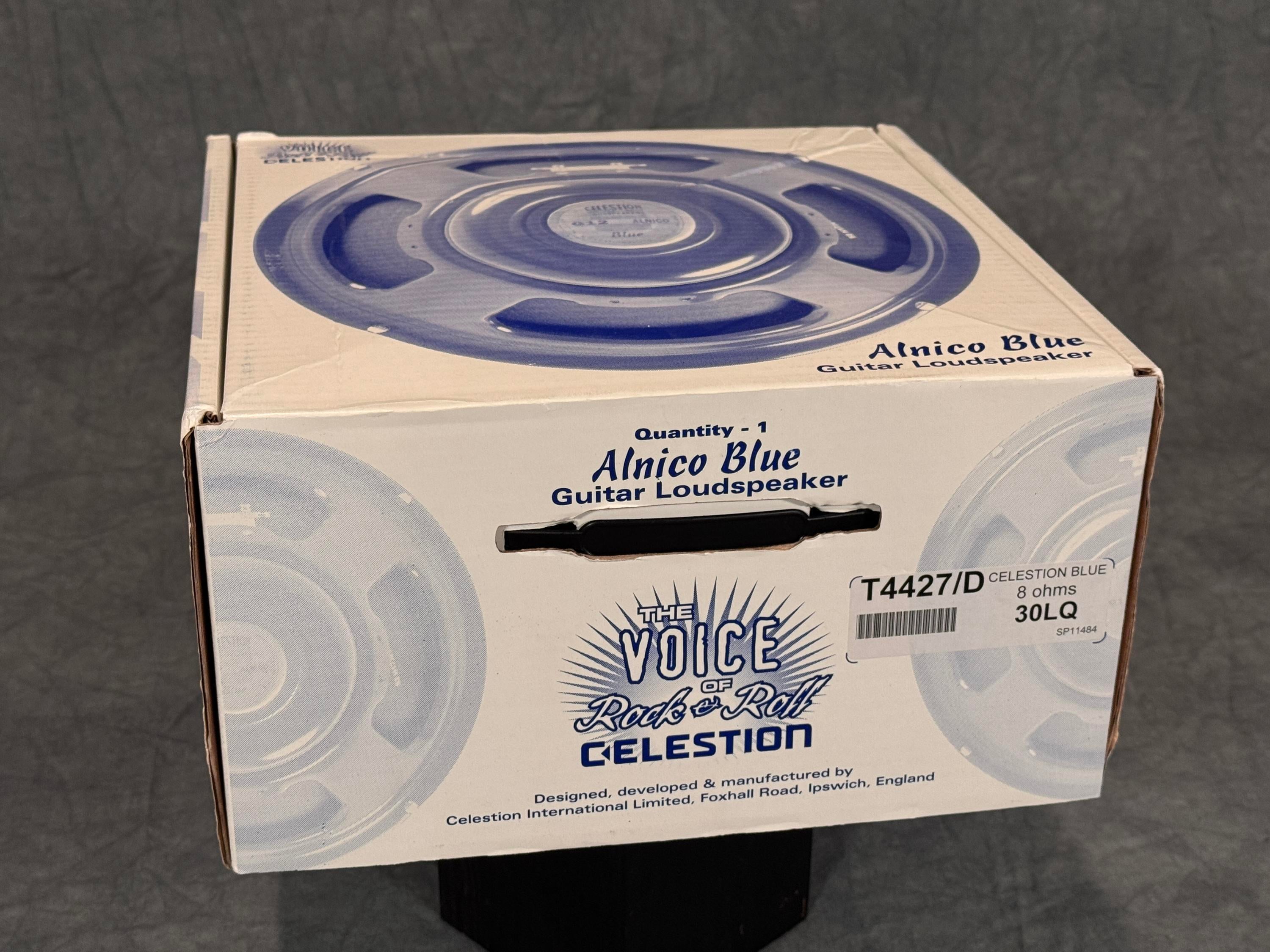 Very lightly-used 2005 Celestion Alnico Blue guitar loudspeaker, 15 watt 8-ohm model purchased for a Vox AC30CC2 Custom Classic. Make in Ipswich, England (not China) hence the older stock number T4427/D. Comes from my smoke-free home studio, low hours and always played at low levels. Comes with all original packaging.