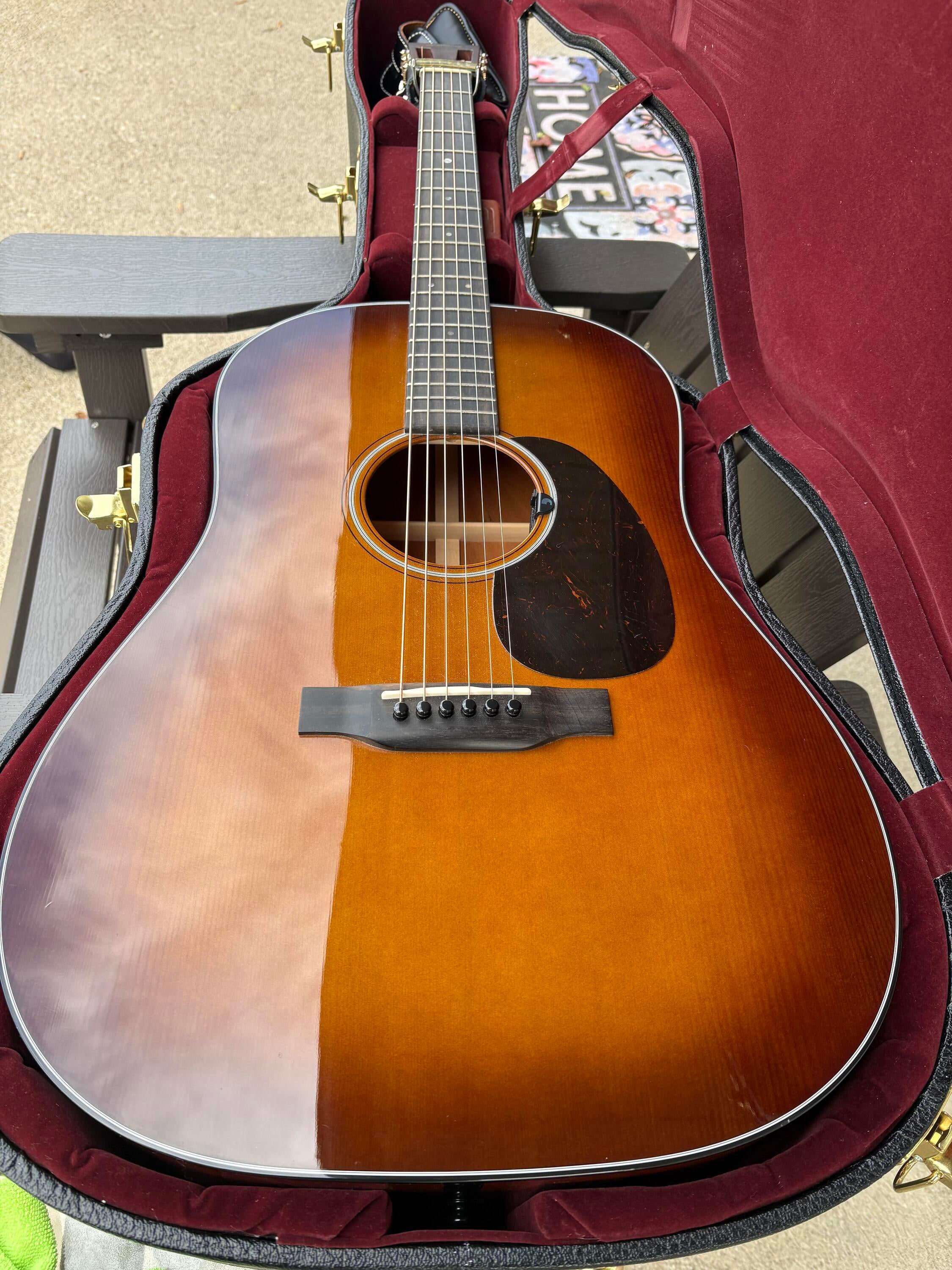 This is a custom shop 12 fret Martin dreadnaught (no electronics) in sinker mahogany amber tone finish. I bought it new in 2023 and have rarely played it. I play other stringed instruments and wanted a nice Martin. It has big sound and plays like a dream w low action for a Martin. It has lived primarily in the case in my home.