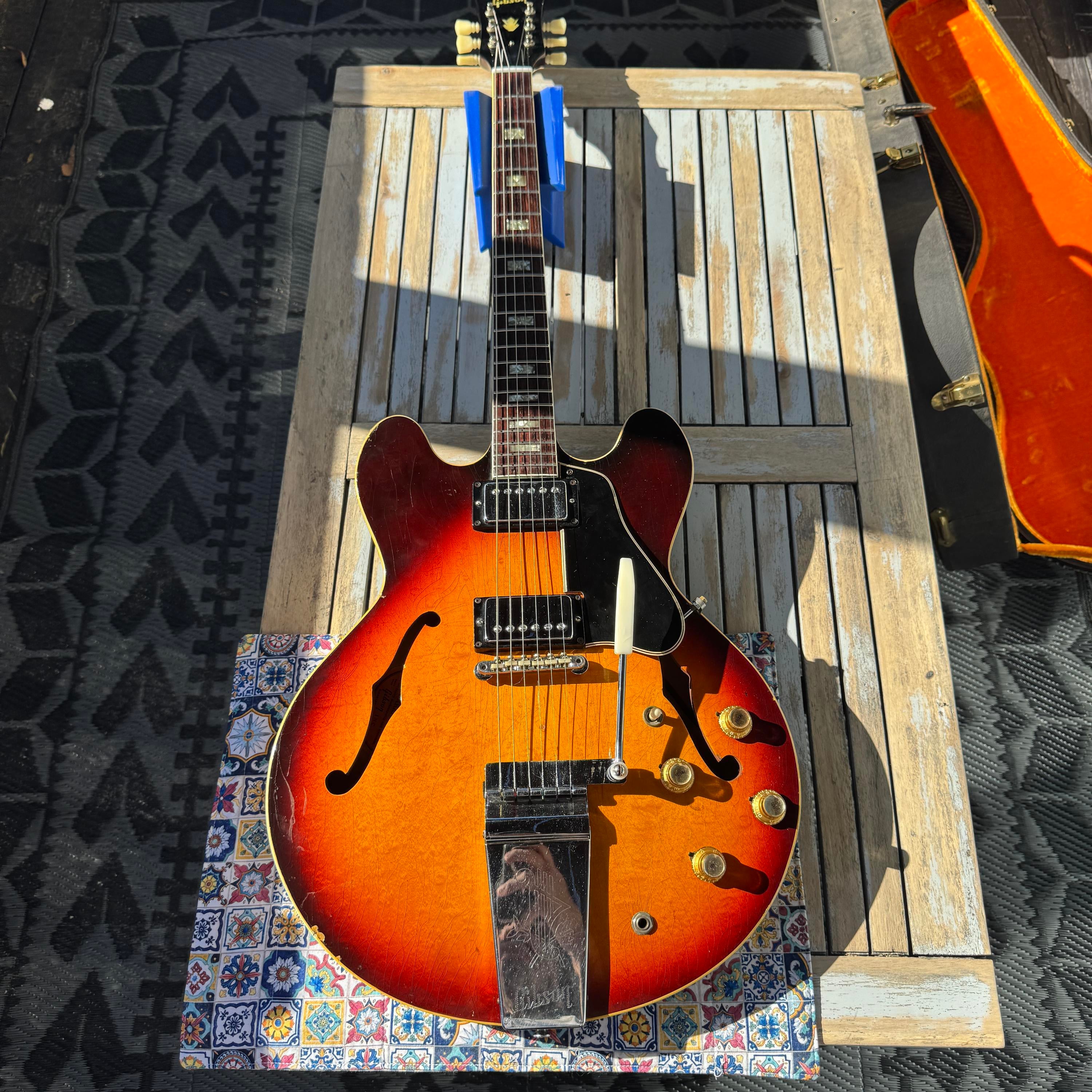 Up for sale is a vintage 1965 gibson es335 in sunburst with a factory Maestro Vibrola.