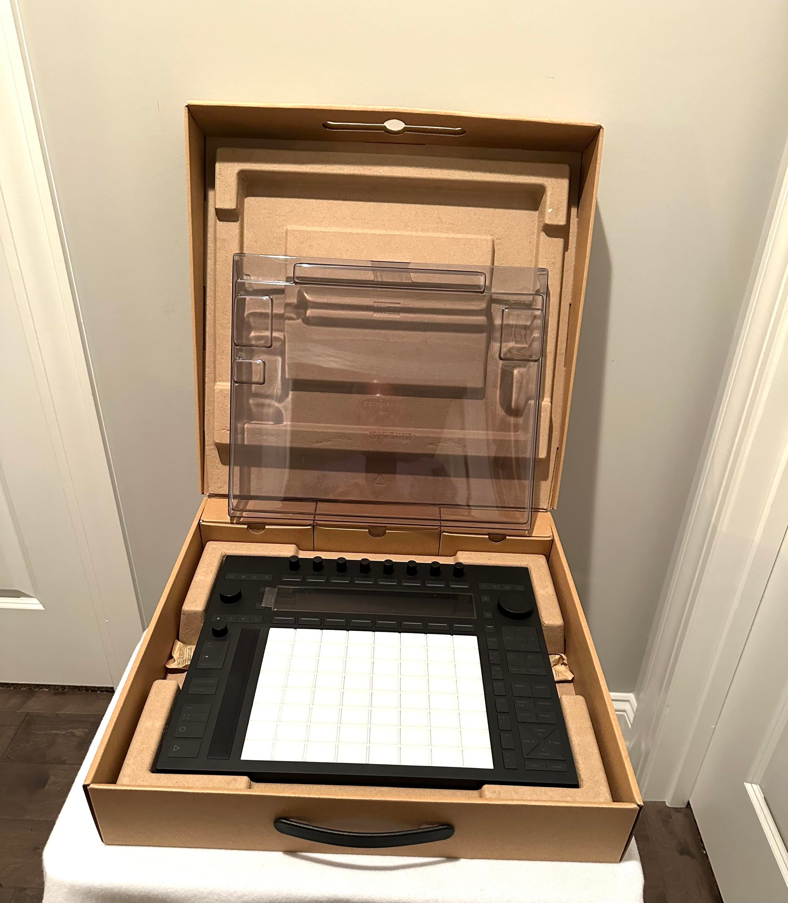 Ableton Push 3 Control Surface in mint condition. Includes Decksaver Polycarbonate Cover, power supply and USB -C cable. All items in original Ableton packaging.