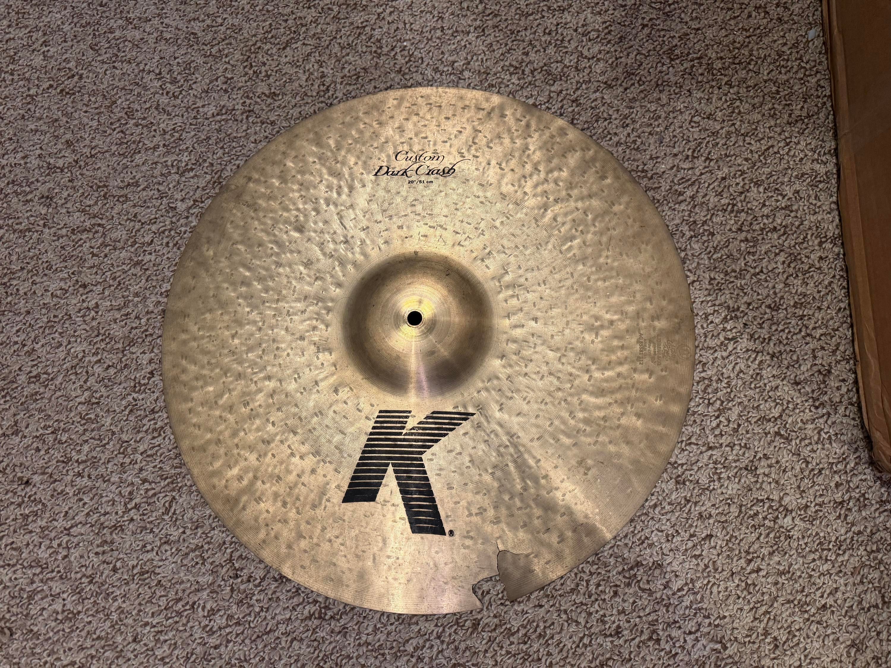 Cymbal has a crack on the bottom right of the cymbal (refer to last photo). It has been like that for 5 years and has not gotten worse or affects the sound of the cymbal.