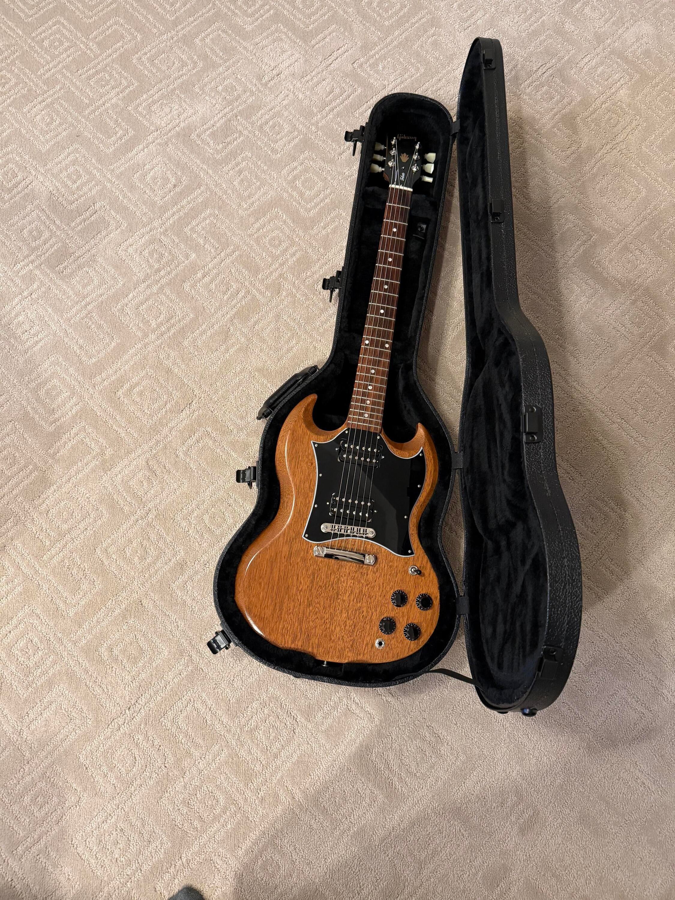 One very minor scratch below the pick guard. Otherwise, it is in mint condition. Added a set of locking tuners ($120 value) and a case ($200 value). New, the guitar sells for $1299. Depending on where I am shipping to, the shipping costs may be reduced.