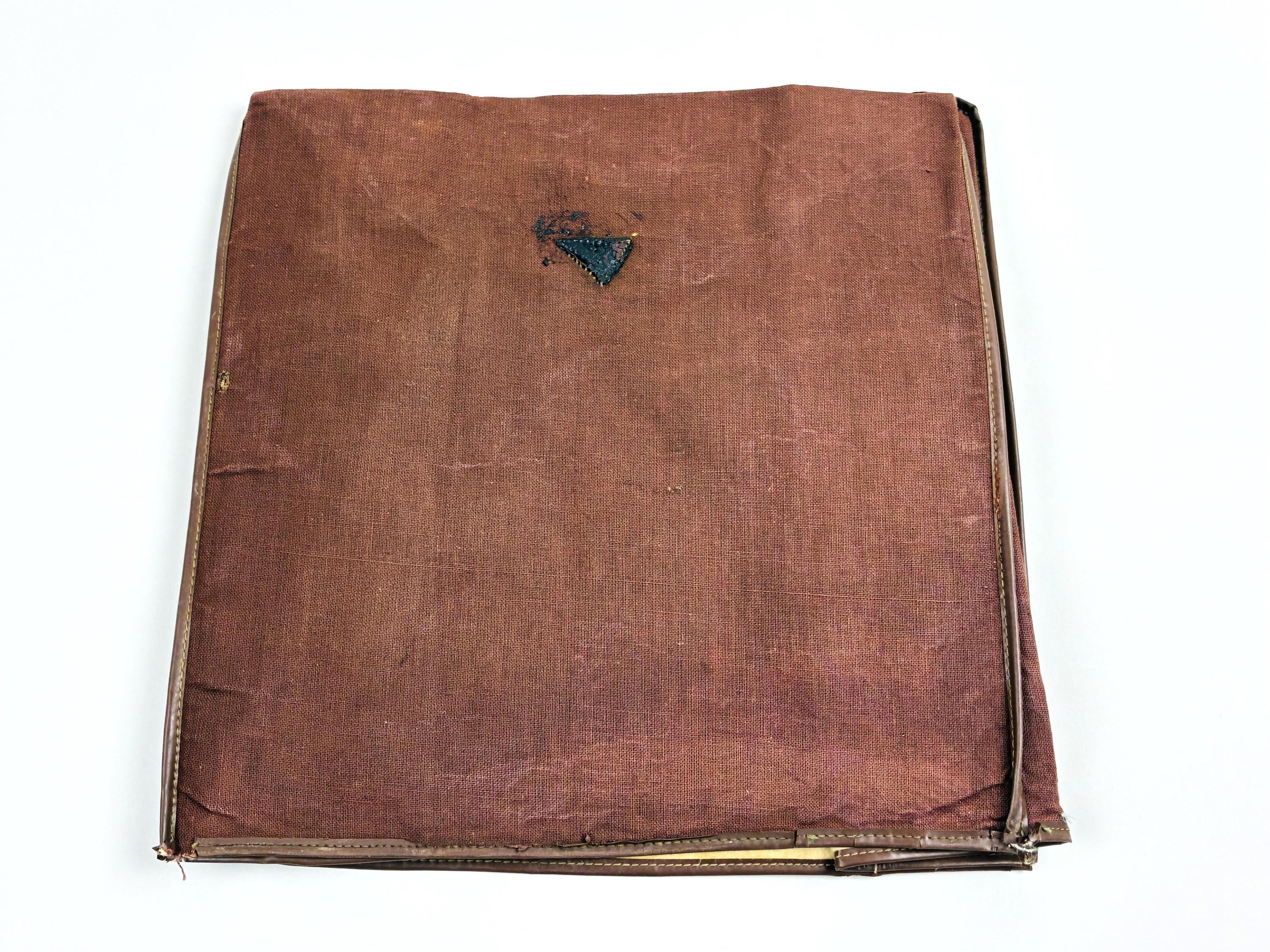 Original Gibson factory amplifier dust cover from the late 1950s to early 1960s era. Brown cloth exterior with the correct felt-lined interior and stitched edge binding. Shows honest age and wear, exactly as you’d expect from a cover that’s survived six decades.