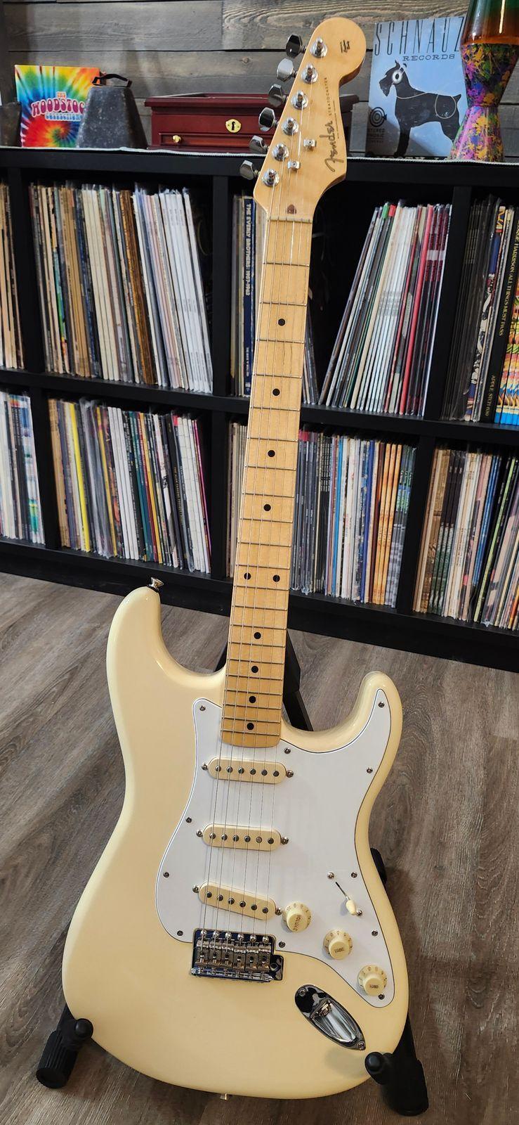 Jimi Hendrix Style Stratocaster Fender Body and hardware, Fender made in Japan neck 9.5 radius (I wasn't fond of the stupid looking backwards headstock so I decided to build my own) Guyker Locking Tuners (when drilling for these I accidentally chipped one of the holes - shown in pics) you really have to look close to see it, other than that this guitar is flawless. This is how Jimi's looked not that ugly thing their selling whoever came up with that idea should be fired. Cost me way more to build it then I'm asking !