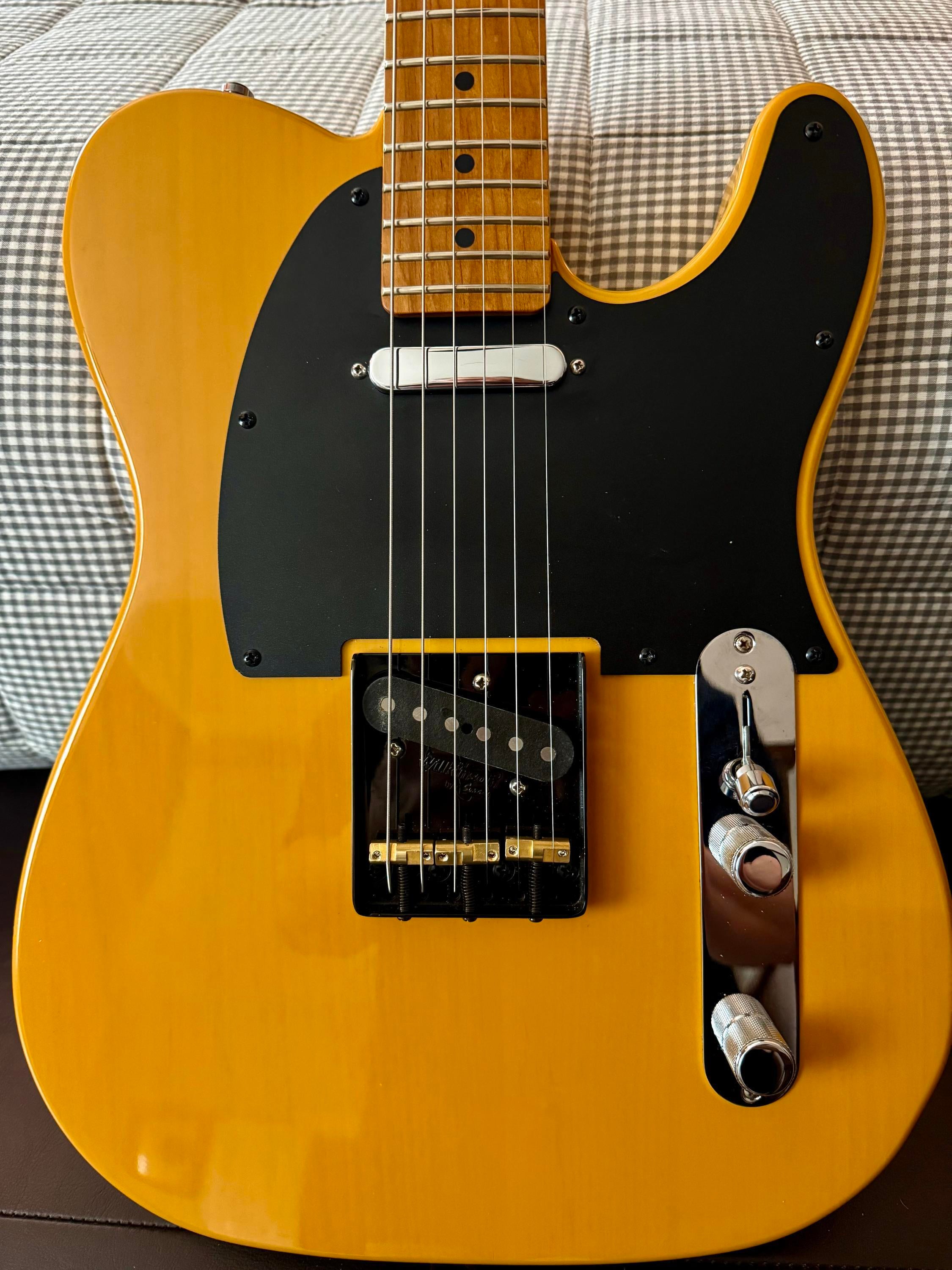 ORIGINAL INCLUDED Bridge - 6-Saddle String-Through-Body Tele® with Block Steel Saddles ORIGINAL INCLUDED Pickguard - 3-Ply Black