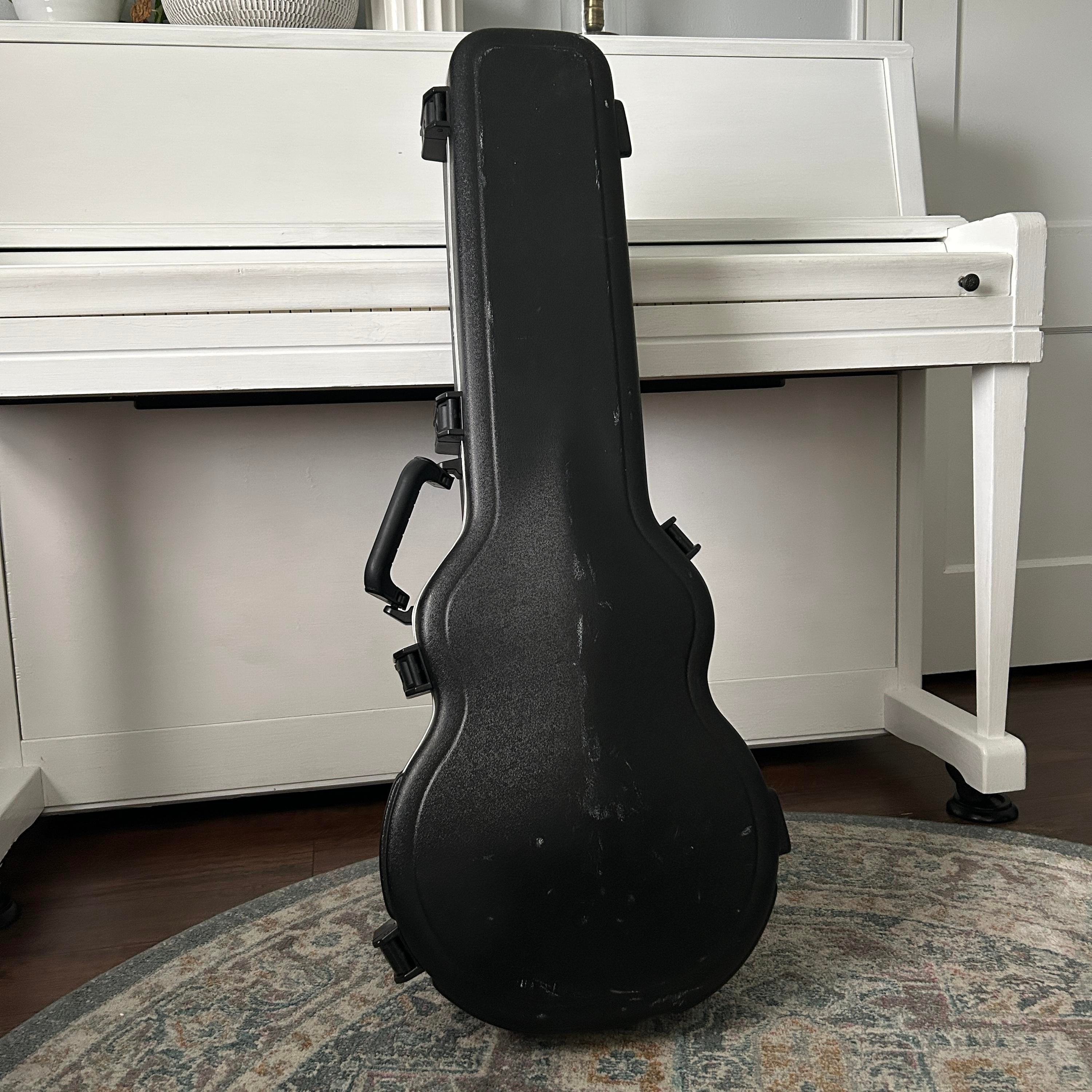 Here we have an SKB flight case for a Les Paul style guitar. It has scuffs and marks on the outside from use but no damage at all. The latches are super tight and it comes with TSA key. SKB offer the best in protection/weight whether you’re going across town or across the world.