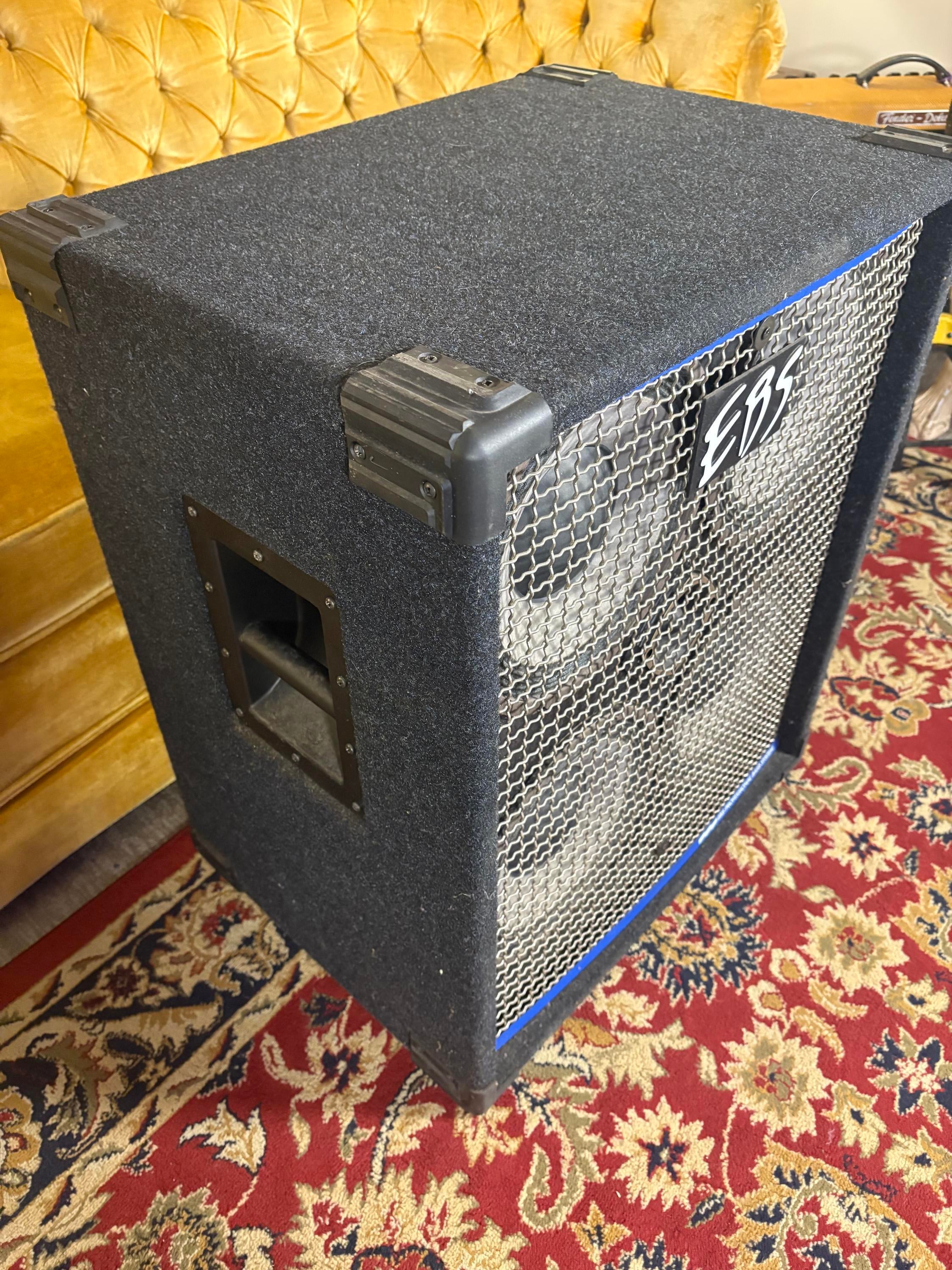 This EBS 4x10 is in very good shape. There is some slight evidence of a run-in with a cat on the ozite covering (they love that stuff), but it is minimal. It features dual inputs and a tweeter with a volume control. Overall, this one is tight and ready to roll! These are some of the best sounding bass cabinets in the business! This cabinet weighs 58.5 lbs.