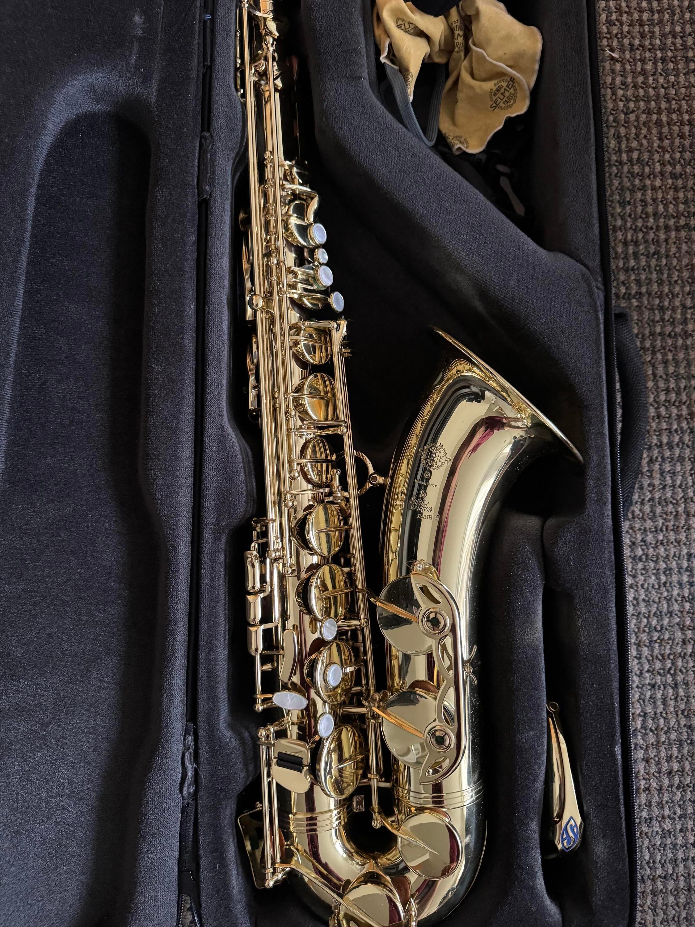 A players horn! This Selmer Serie II is most likely a Euro Sax due to the lack of an engraving on the bell. The sax is in great overall condition, with only a couple of minor dings on the bell & bow, as well as some small scratches on the body. Aside from that, the lacquer is absolutely perfect & the sax is free from major dents and no solder/repair spots. No neck pulldown. Pads are in very good condition from top to bottom. This one plays just like any Selmer would, with a great core & versatility for any style of playing. It comes with what I believe to be the original case. This is a one-owner horn! Serial #667XXX.
