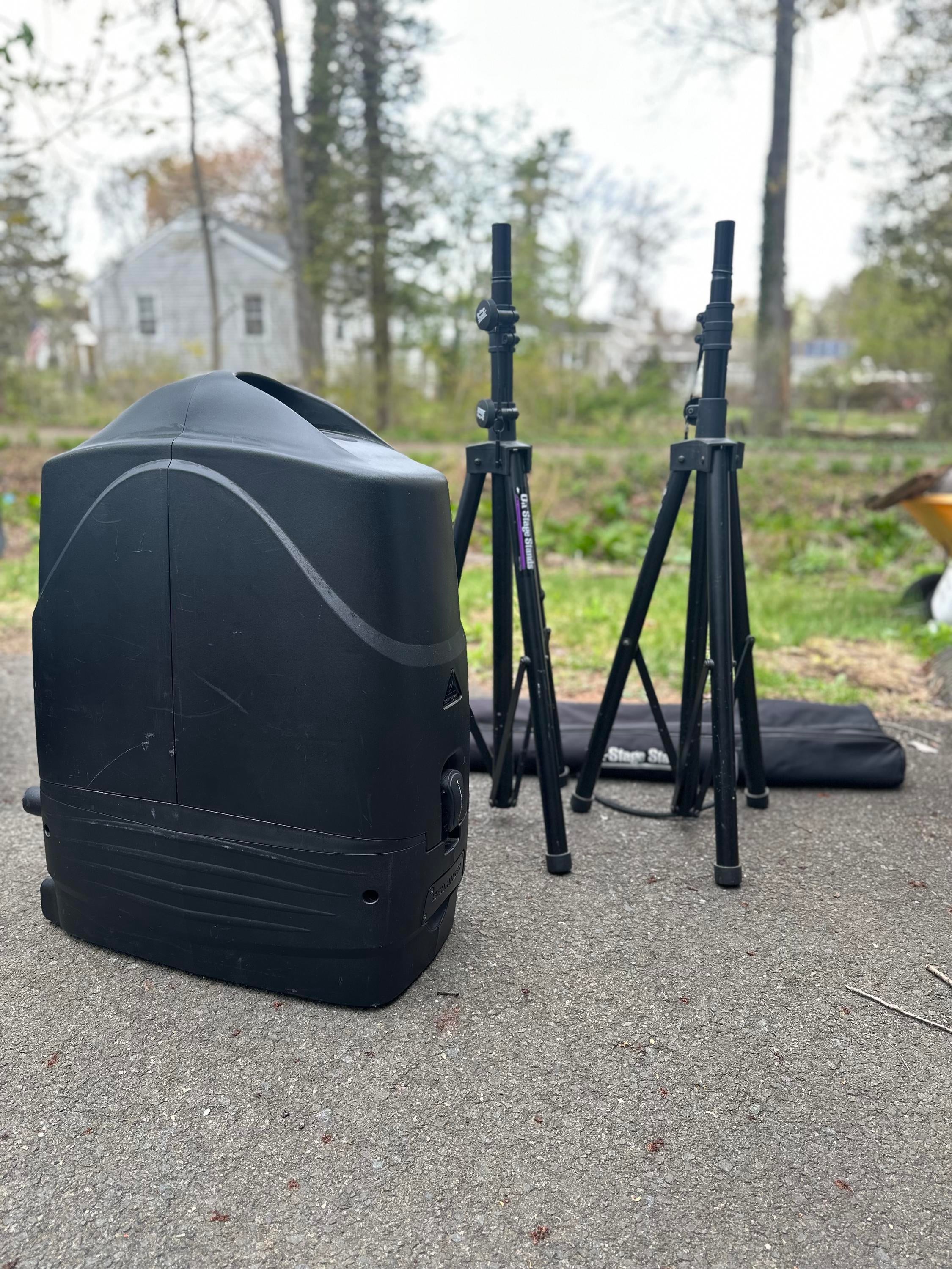 Perfect working condition. Has some minor blemishes from regular wear and tear. I will include two On Stage speaker stands.