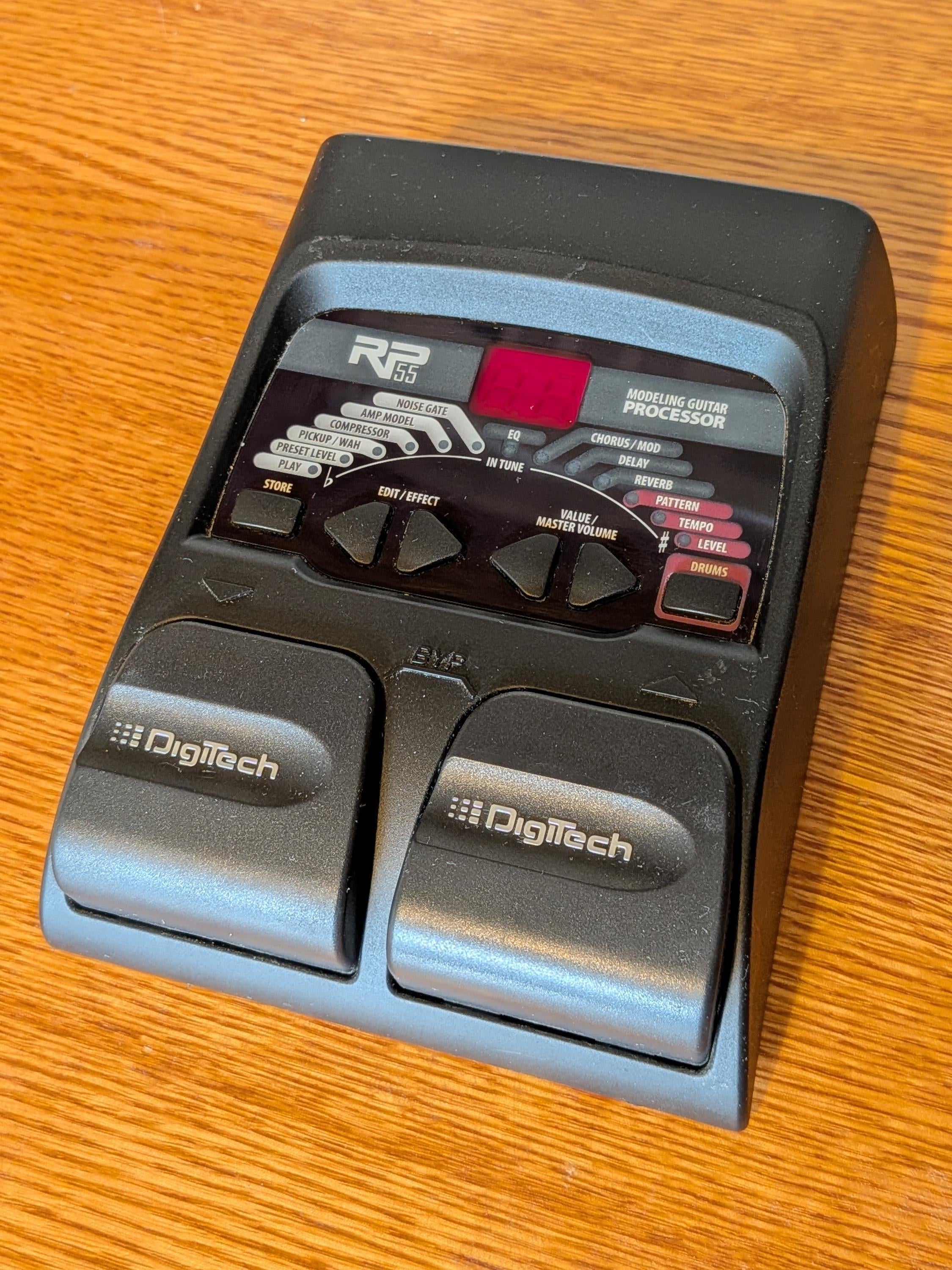 This pedal is in very good shape! There's some light scuffs and scratches here and there throughout (mostly on the sides), some light swirling on the display screen, and a few minor chips in the paint along the back edge. The bottomside shows the most signs of use, including some moderate/heavy scratches, and two of the little rubber feet are gone.