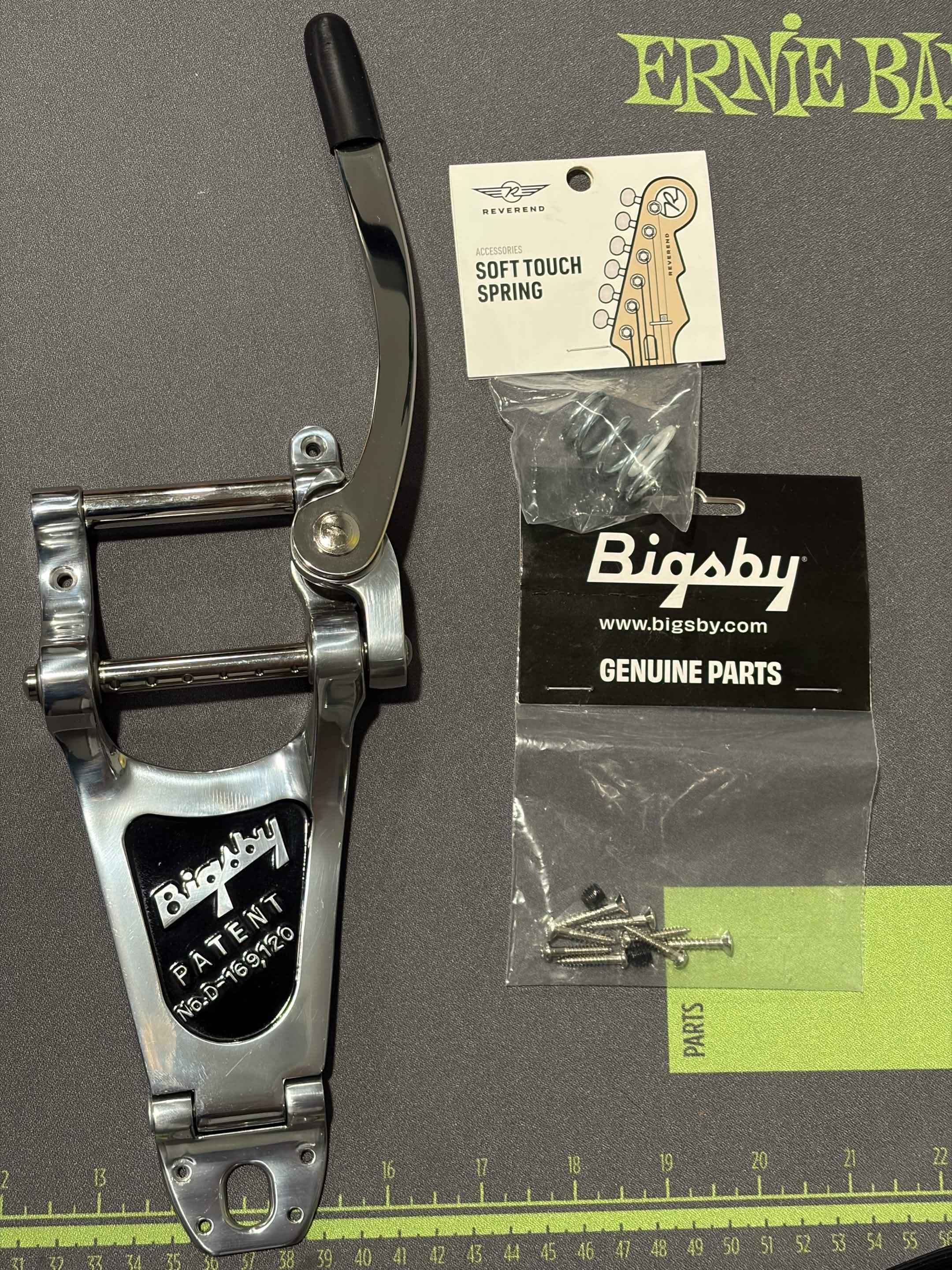 Used briefly on a project guitar. Includes a new pack of official hardware for a clean installation and Reverend Soft Touch spring for easier operation.
